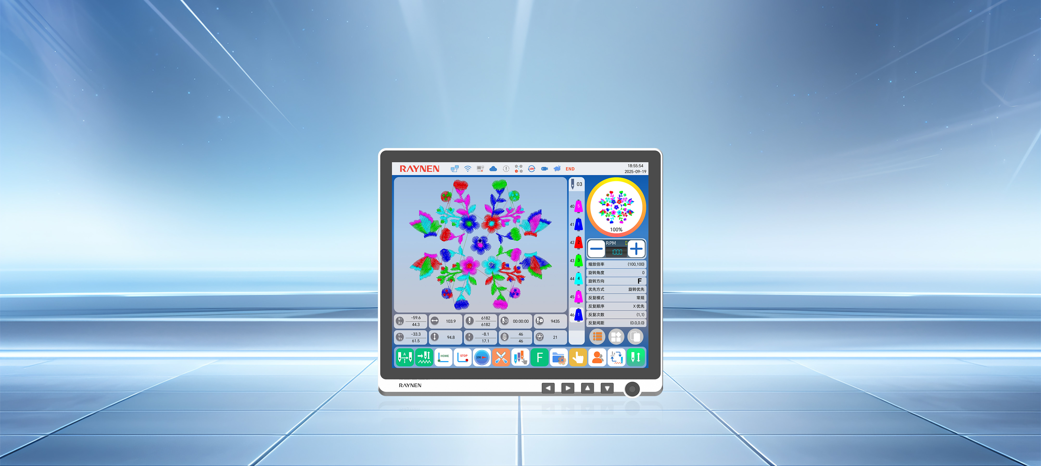 S700系列刺绣机电控系统通过紧凑的机身设计、标准化部件应用,提升了空间利用率和设备维护便捷性,降低了运营成本。其无线操作屏、高精度绝对值编码器伺服控制系统、全新通用专机伺服等技术创新,不仅提高了生产效率和产品质量,还通过移框智能防夹设计、安全光幕和高清显示屏增强了设备的安全性和操作性。同时,配置了智慧工厂网络管理接口,实现了设备的远程智能化管理,并在精度控制上达到行业领先水平。
