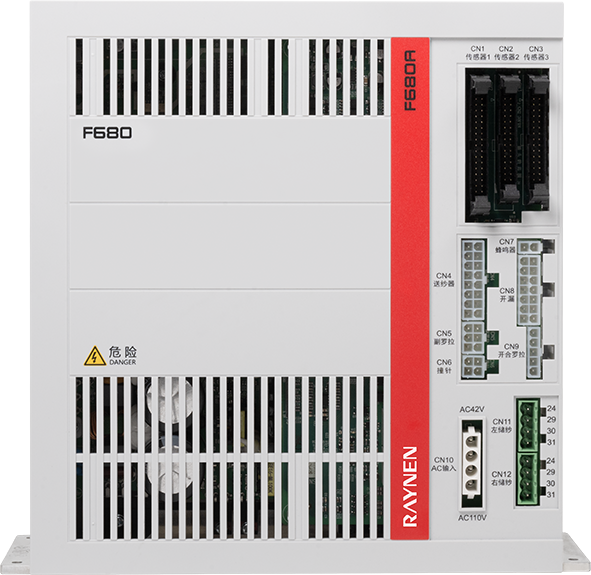 横机电控,是电脑横机的核心部件,它能通过识别打版系统制作的针织打版文件,犹如毛衫的打印机一样,将毛衫或鞋面的设计变为现实,主要由配电盘、主控盒、伺服、起底板、罗拉驱动、机头以及相关线材组成。