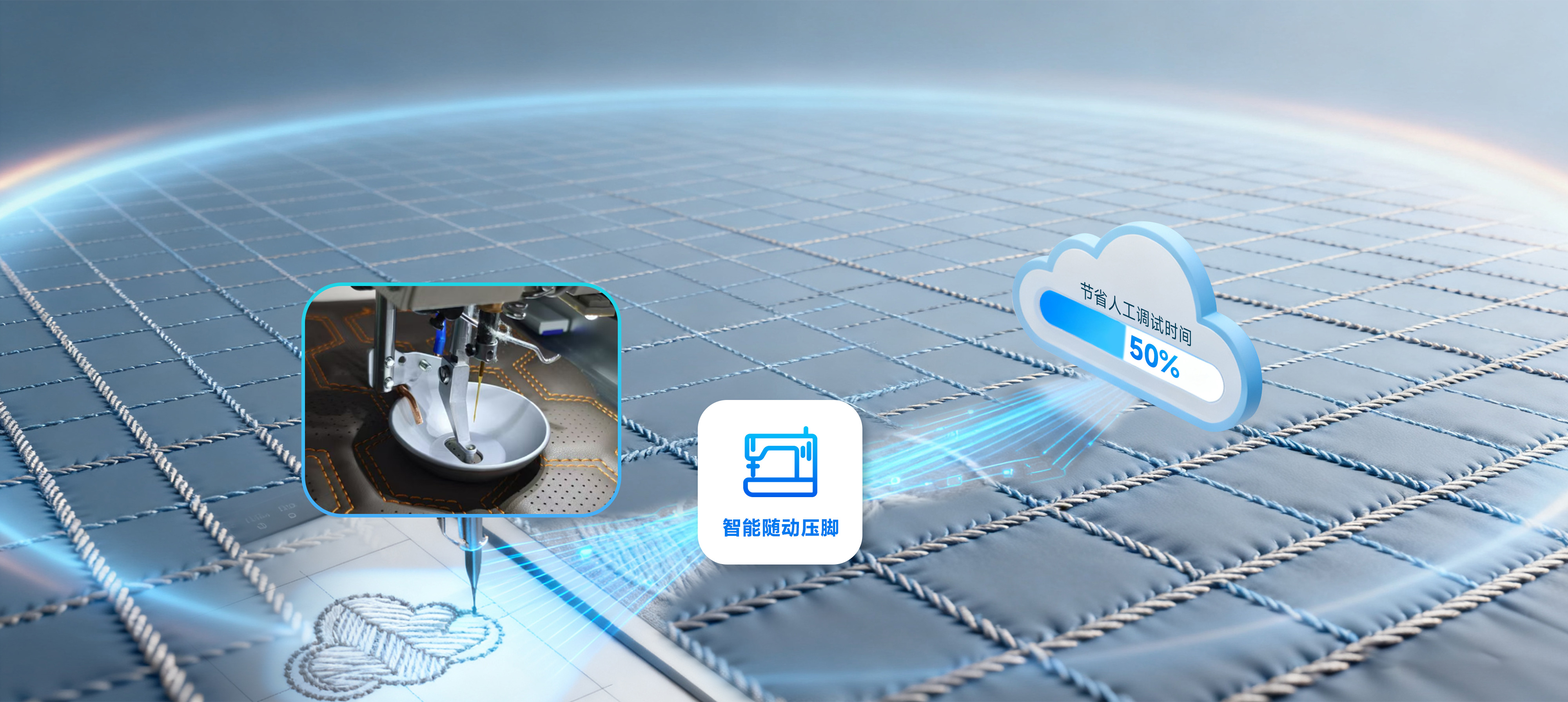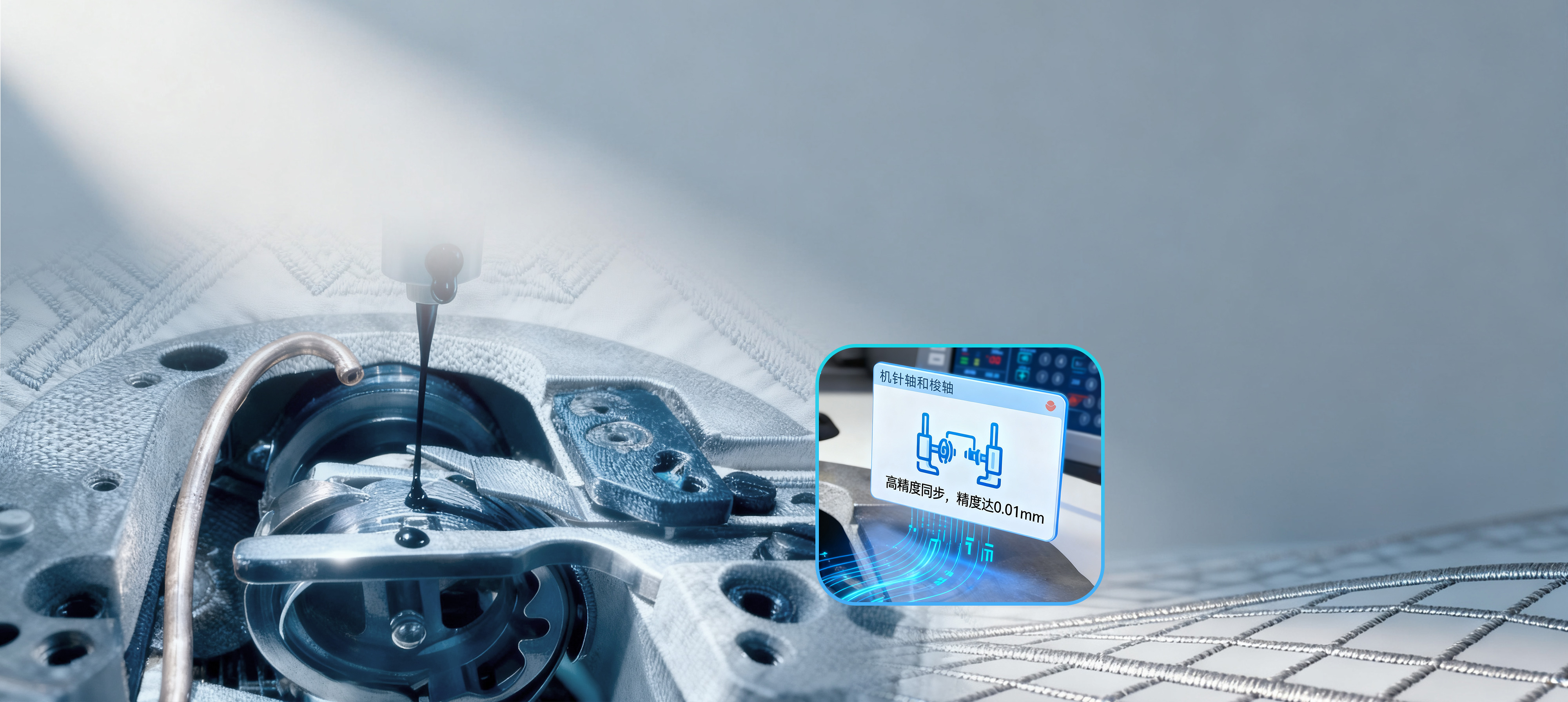 集成专利伺服算法,实现机针轴和梭轴高精度同步,精度达0.01mm,动态调整缝纫角度,确保线迹始终正向