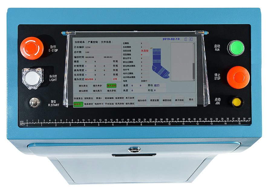 织缝翻一体全电脑袜机控制系统集织袜、缝头、翻袜、检测于一体,真正实现“所见即所得”的编织,大大提高生产效率,减少人工投入,节约生产成本。